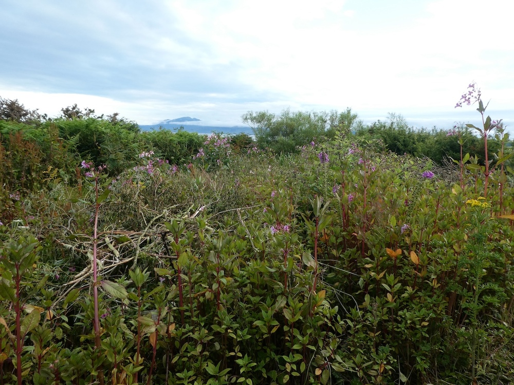As you will see from the photographs, Himalayan Balsam has taken hold in the area. This pretty bee magnet is unfortunately a highly invasive weed, and can spread and choke out other plants if not kept in check. It is easy to pull out of the ground, but you need to be sure to get the roots out too and be careful how you dispose of it ~ you don't want to spread it to other areas. I bagged mine up until it looked pretty mushy and then put it in my compost bin. We will never be rid of it, but we can try and keep it under control in the garden at least.
